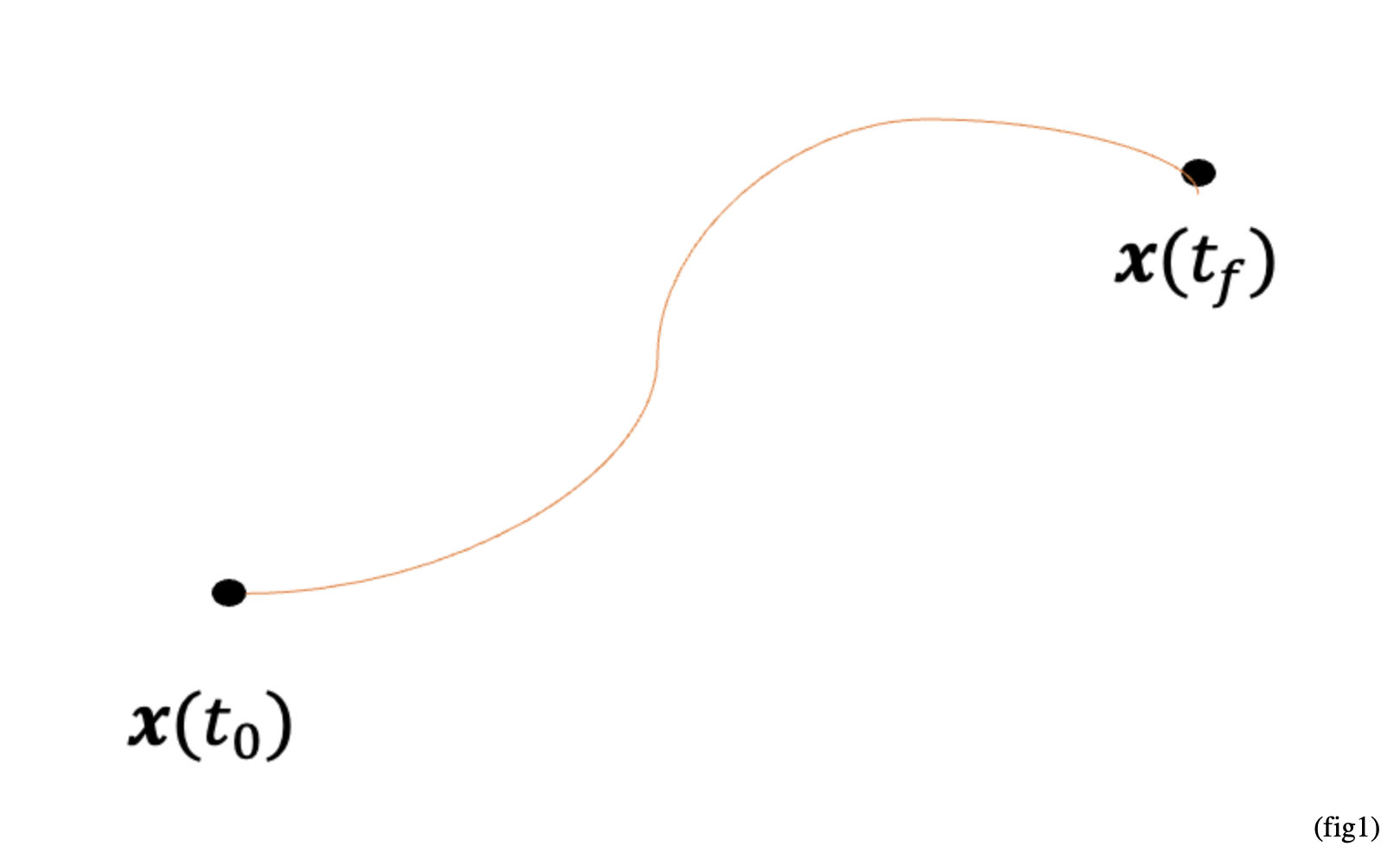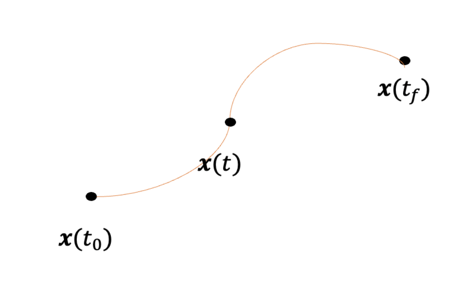 최적 제어(Optimal Control)는 아래의 그림에서 제어 입력(control) $\mathbf{u}(t)$을 디자인하여 cost $J$를 최소화시키면서 상태(state) $\mathbf{x}(t_0)$에서 $\mathbf{x}(t_f)$까지 도달하는 것을 목표로 한다.